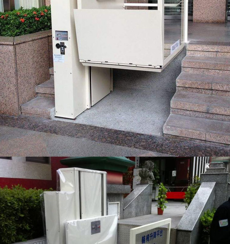 無障礙升降機(jī):是為殘疾人專門設(shè)計制造的升降機(jī)。為方便殘疾人出行及觀光,在社區(qū),醫(yī)院,學(xué)校,賓館,酒店,公共場所等地方。旅游觀光梯通道的自動扶梯旁,安裝了無障礙升降機(jī)。無障礙升降機(jī)可容納輪椅車出入,殘疾人或行動不便者只需按一下兩端的求助按鈕,值班人員就會立刻開啟自動升降機(jī).