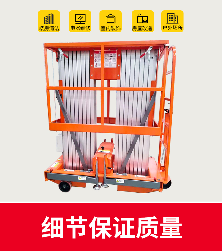 雙柱鋁合金升降機,具有移動靈活、升降平穩(wěn)、操作方便、載重量大等特點。采用國外和國產(chǎn)液壓泵站。主要適用于工廠、物業(yè)單位、商店裝潢、建筑、裝飾、場館館布置、會議中心等行業(yè)。